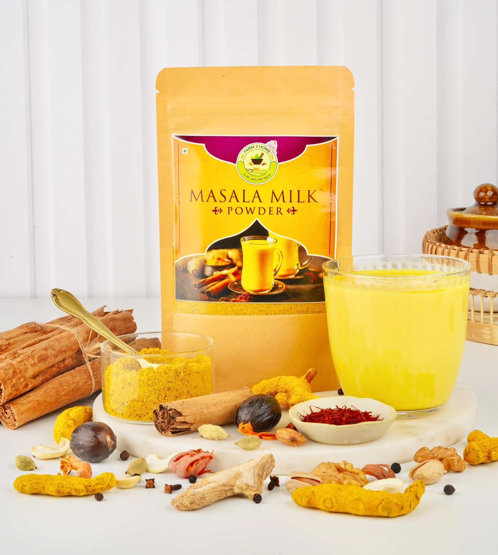 ✅Masala milk consists of almonds, cashews, walnuts, pistachios, turmeric, pepper, dry ginger, nutmeg, cinnamon, cloves, cardamom, and saffron strands.